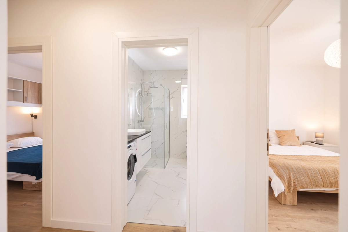 Moderni dvosobni apartmani koji udobno mogu smjestiti do 6 osoba. Smješten u mirnom dijelu Zadra, Diklo je savršena lokacija za opuštajući odmor bez prevelike udaljenosti od starog grada Zadra i prekrasnih plaža.