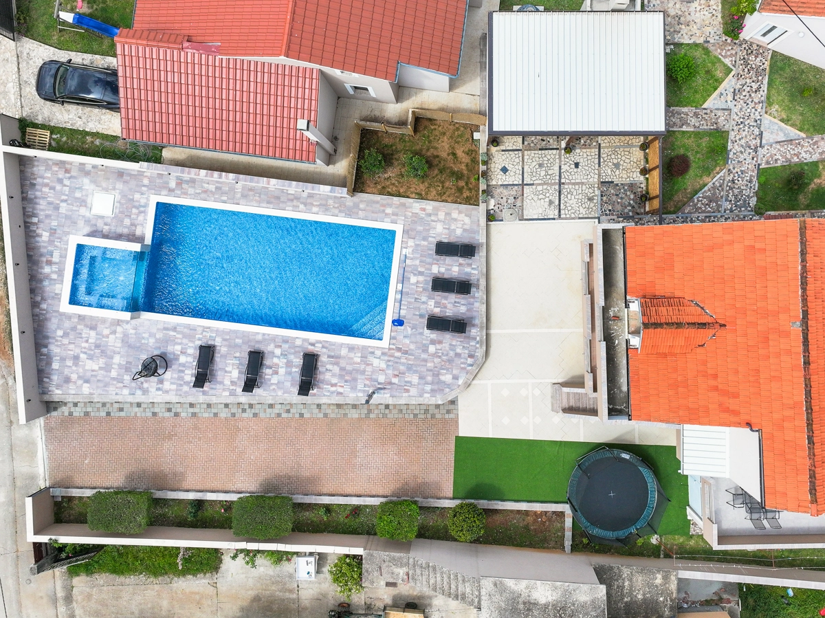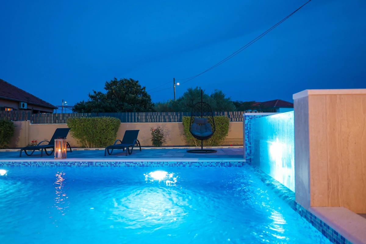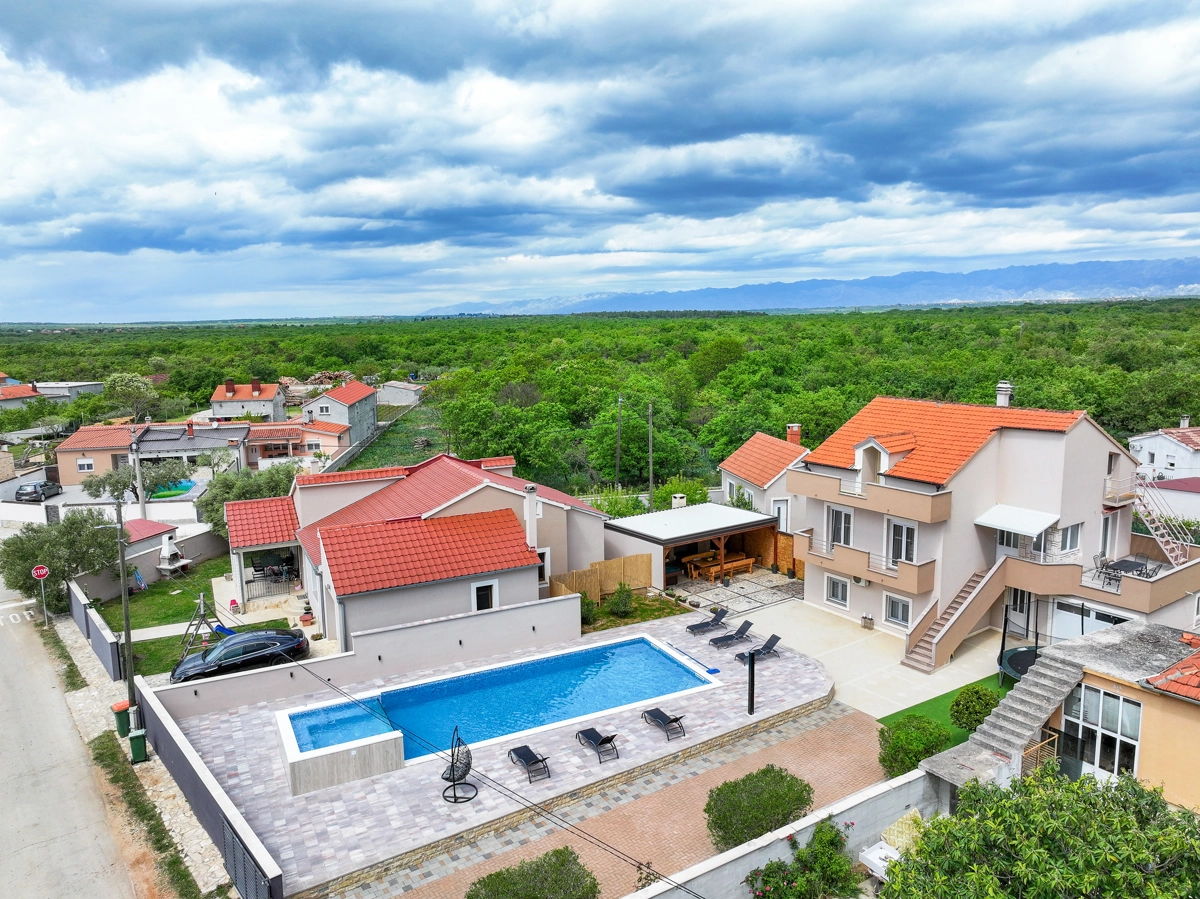 Novoizgrađena Villa Nada u šarmantnom selu Galovac samo 20 minuta od povijesnog grada Zadra nudi 2 odvojena apartmana za smještaj do 10 osoba u 4 spavaće sobe i 2 sofe na razvlačenje. Svaka spavaća soba ima king size krevet. Ima 3 potpuno opremljene kuhinje i 2 kupaonice. Kuća ima vanjski bazen 55m2 sa izgrađenim jacuzzijem od 9m2 koji koristi. Bazen i jacuzzi se ne griju, ali vidjet ćete da su savršene temperature tijekom ljeta. Vanjska kuhinja i ležaljke idealni su za ljetni provod. Kuća se iznajmljuje kao cjelina.