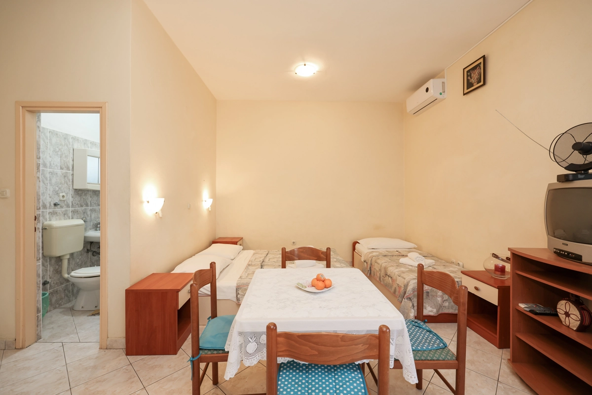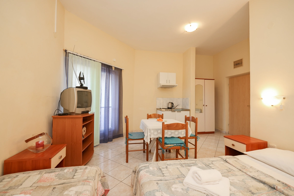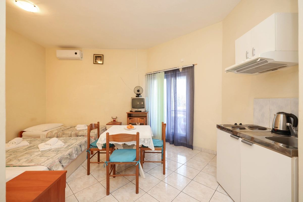 Apartmani su idealno mjesto za Vaš odmor, posebice za obitelji s djecom zbog velikog dvorišta te udaljenosti od plaže samo 10 metara. Zbog male udaljenosti od mora imate mogućnost dolaska s morske strane jer se ispred Apartmana nalazi vez za brodove.