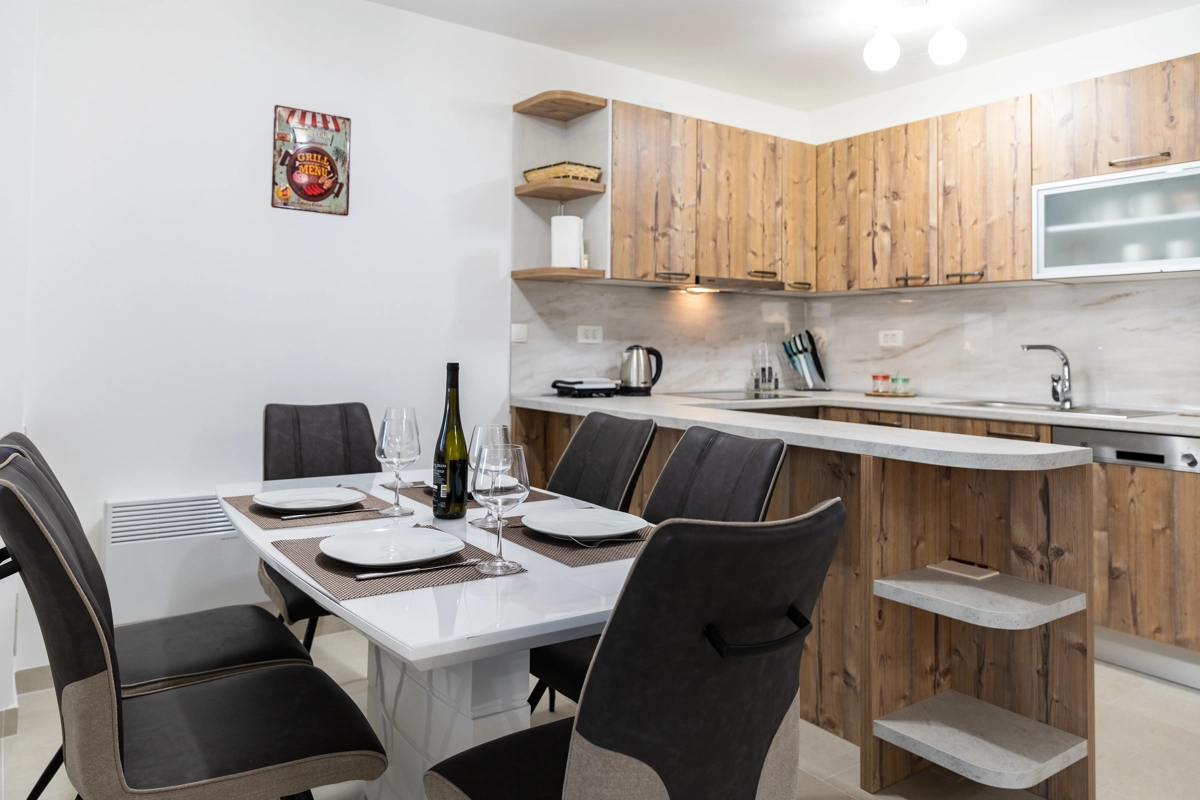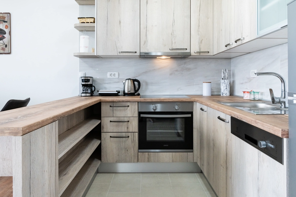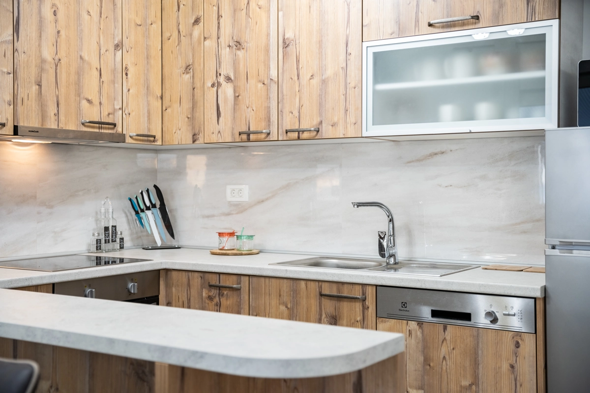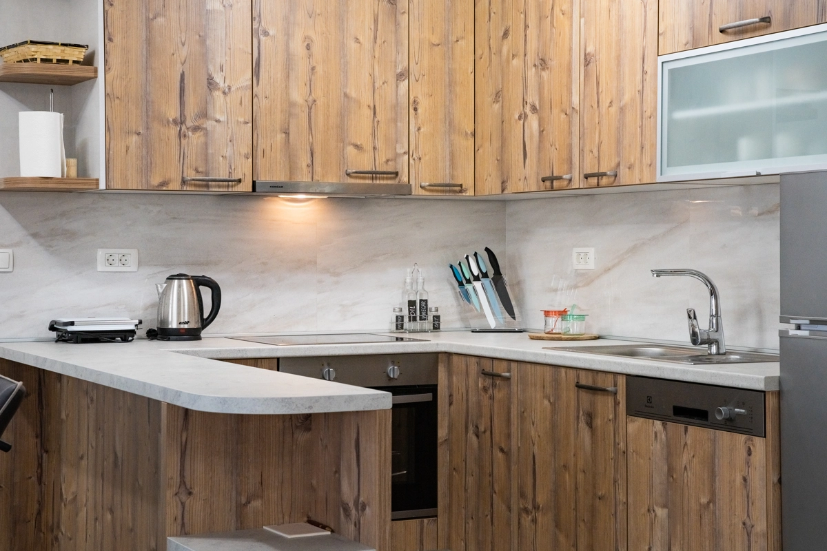 Sve jedinice sadrže kuhinju s perilicom posuđa i hladnjakom, sef, TV ravnog ekrana sa satelitskim programima, glačalo i stol za glačanje, radni stol te prostor za sjedenje s kaučom. Gosti mogu koristiti pećnicu, ploču za kuhanje i kuhalo za vodu.