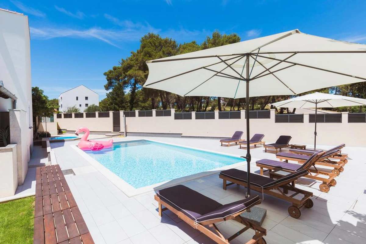 Šarmantna vila s 4 spavaće sobe u Zadru može udobno smjestiti do 10 osoba. Vila nudi vanjski bazen s ogradom, hidromasažnu kadu i parkiralište za bicikle. Jacuzzi je također dostupan kao i nevjerojatna vanjska kuhinja s roštiljem savršena za uživanje u svakom dijelu godine.