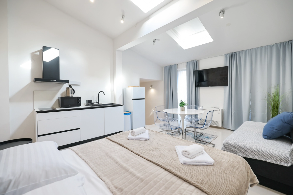 Oba apartmana nude besplatni wifi te su opremljeni flat screen televizijom i kuhinjom.