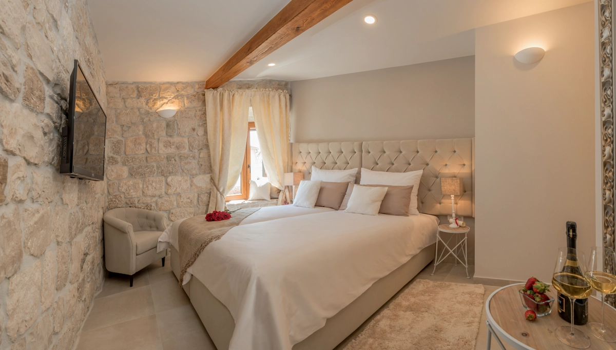 Sobe su ukrašene kamenim detaljima te imaju TV ravnog ekrana i vlastitu kupaonicu s tušem. Neke sobe uključuju prostor za sjedenje gdje se gosti mogu opustiti.