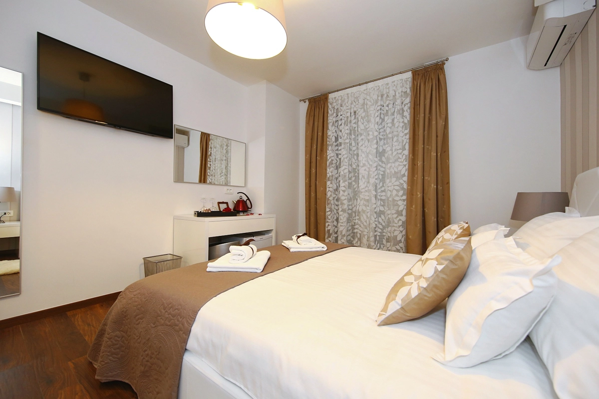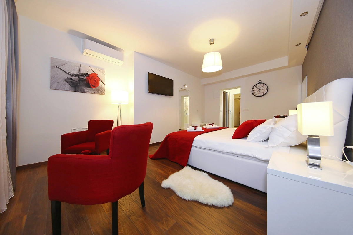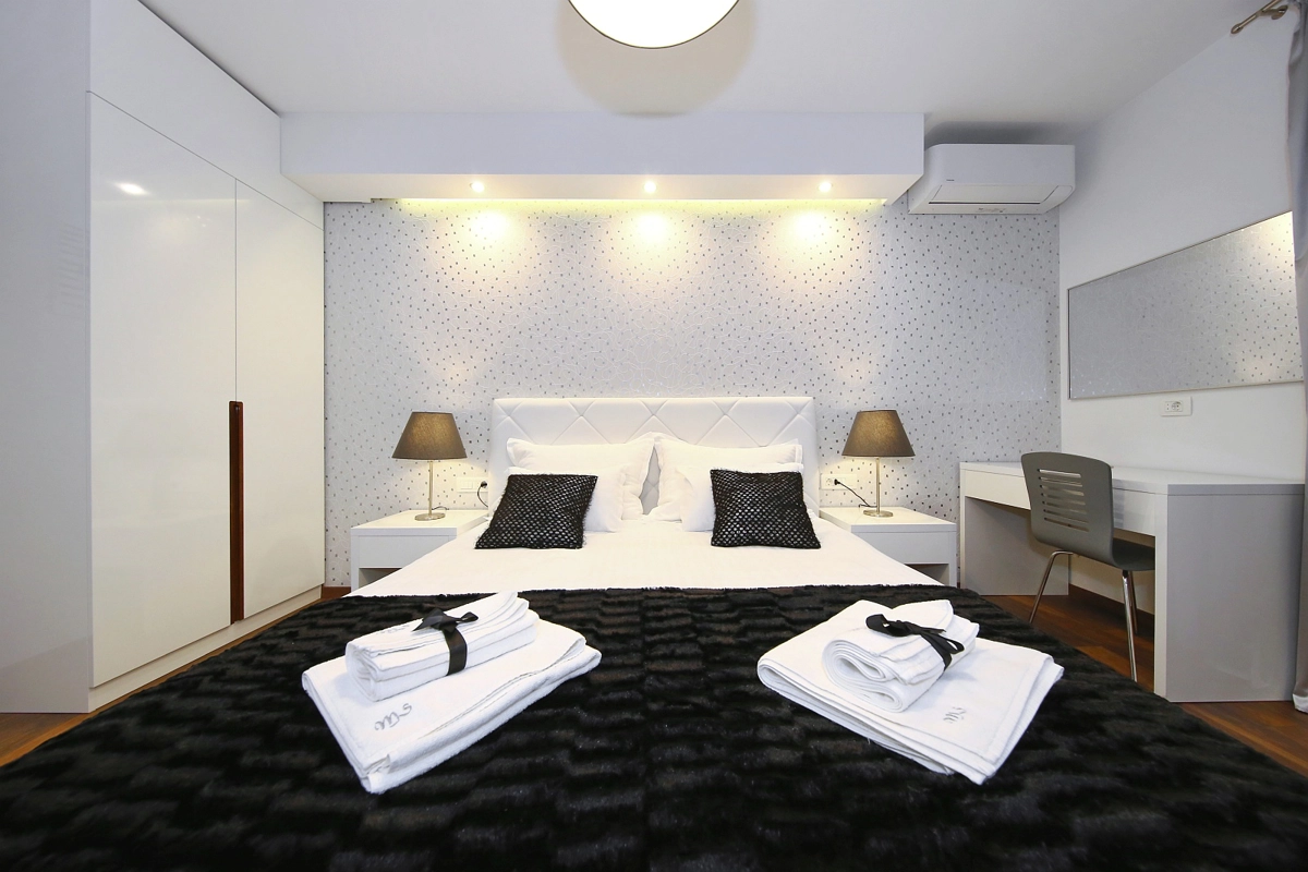 Jedinice uključuju klima-uređaj, TV ravnog ekrana sa satelitskim programima, hladnjak, električno kuhalo za vodu, tuš, sušilo za kosu i radni stol. Pojedine sobe sadrže kuhinju s pećnicom i pločom za kuhanje. U sobama su na raspolaganju vlastita kupaonica, besplatan kozmetički pribor i posteljina.