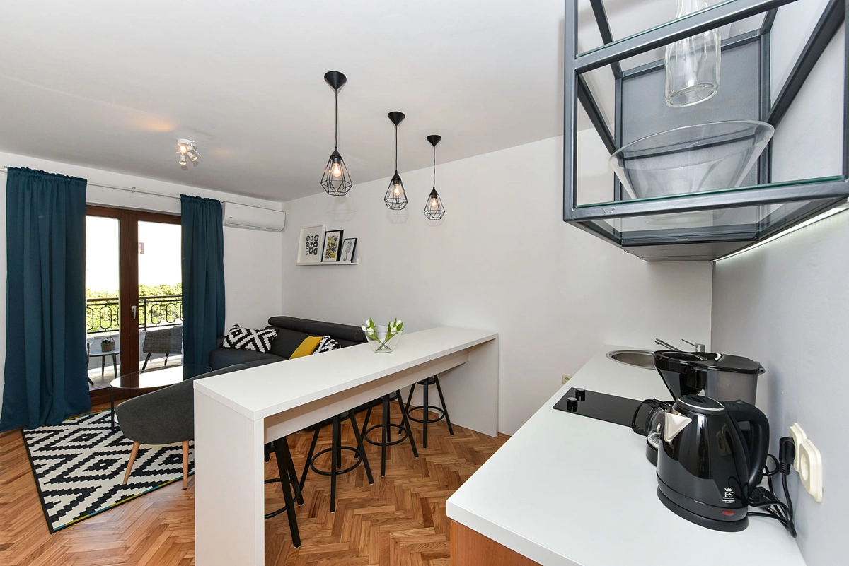 Svaki studio ili apartman je klimatiziran i ima blagovaonicu i prostor za sjedenje s TV-om ravnog ekrana. Većina jedinica ima terasu ili balkon. Također uključuje opremljenu kuhinju i vlastitu kupaonicu s tušem.
