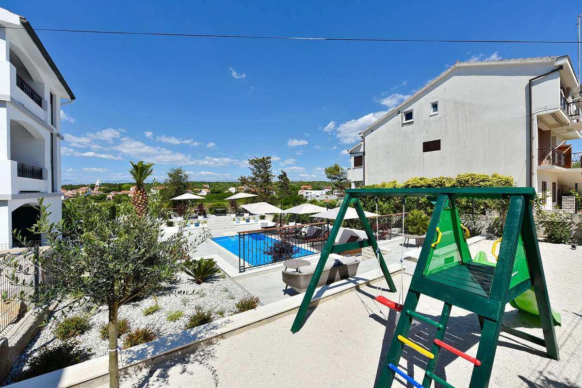 Apartmani Mediterraneo Garden nalaze se na samo 50 metara od najbliže plaže u Petrčanima, a uključuju vanjski bazen s terasom za sunčanje. Gosti mogu uživati u dnevnom boravku s mirisom mediteranskog vrta. Za najmlađe goste tu je dječje igralište. Zadar je udaljen 8 km.