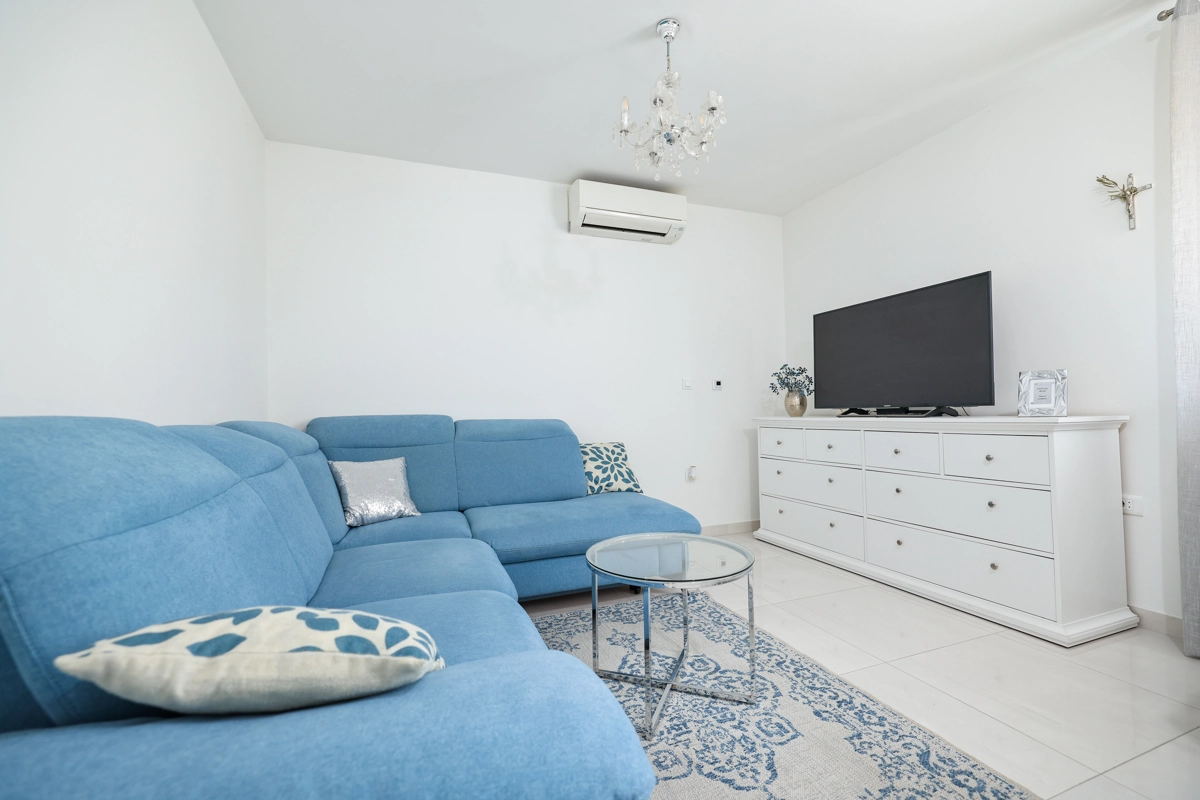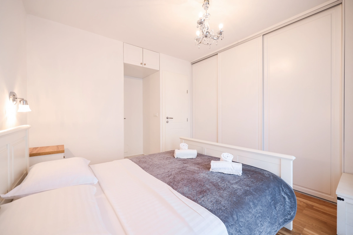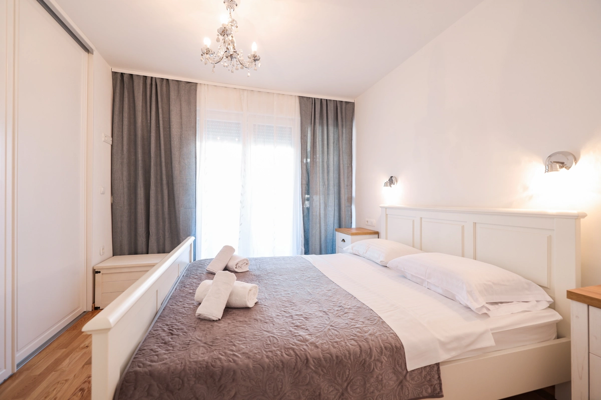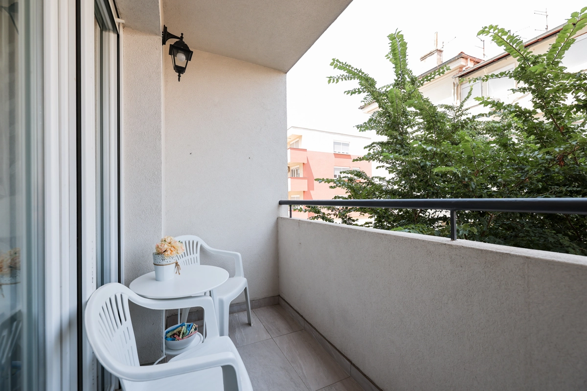 Ovaj predivan novouređeni apartman se nalazi u neboderu u jednom od kvartova koji je 10 minuta pješice od centra grada. Nalazi se na prvom katu i dostupan je dizalom. Ima dvije spavaće sobe, kupaonicu s tušem, jedan wc koji se nalazi u sklopu jedne od soba. Tu su jos kompletno opremljena kuhinja, blagovaonica i dnevni boravak s kaučem.