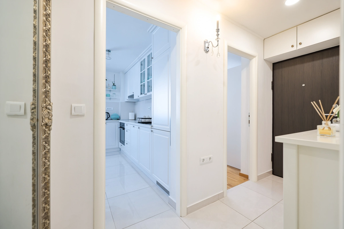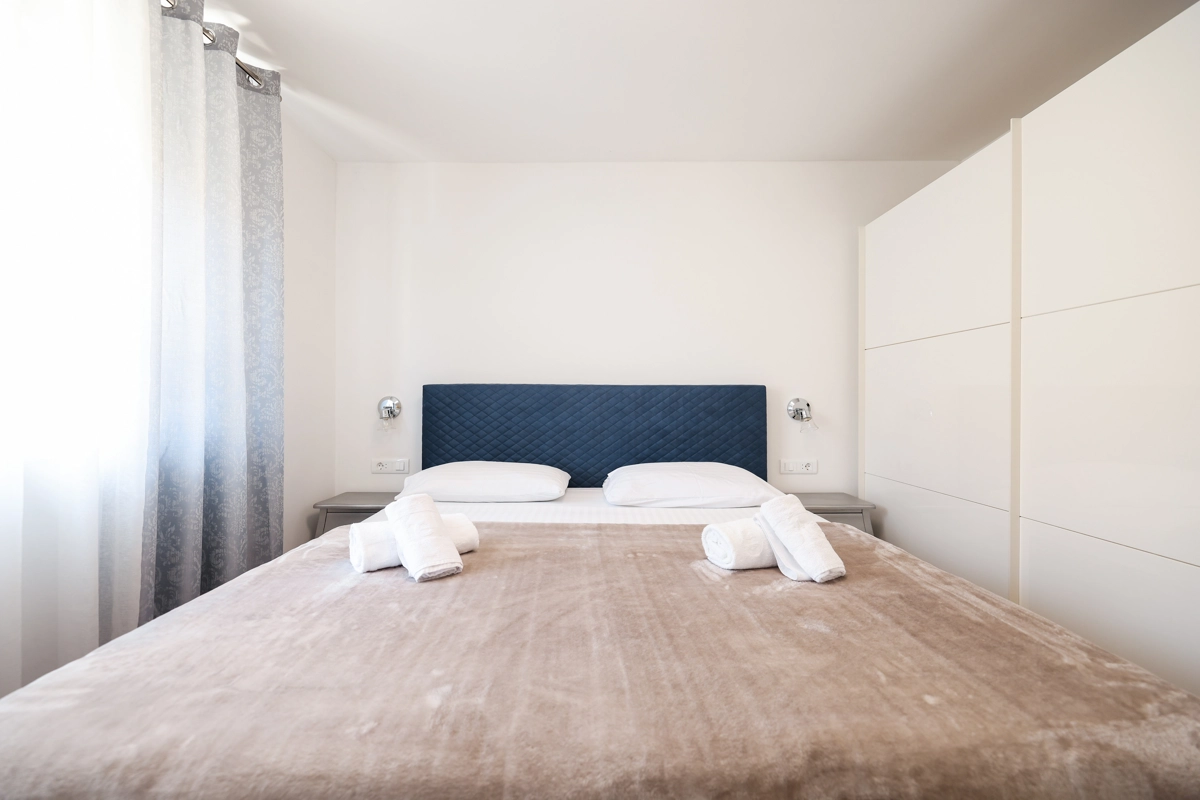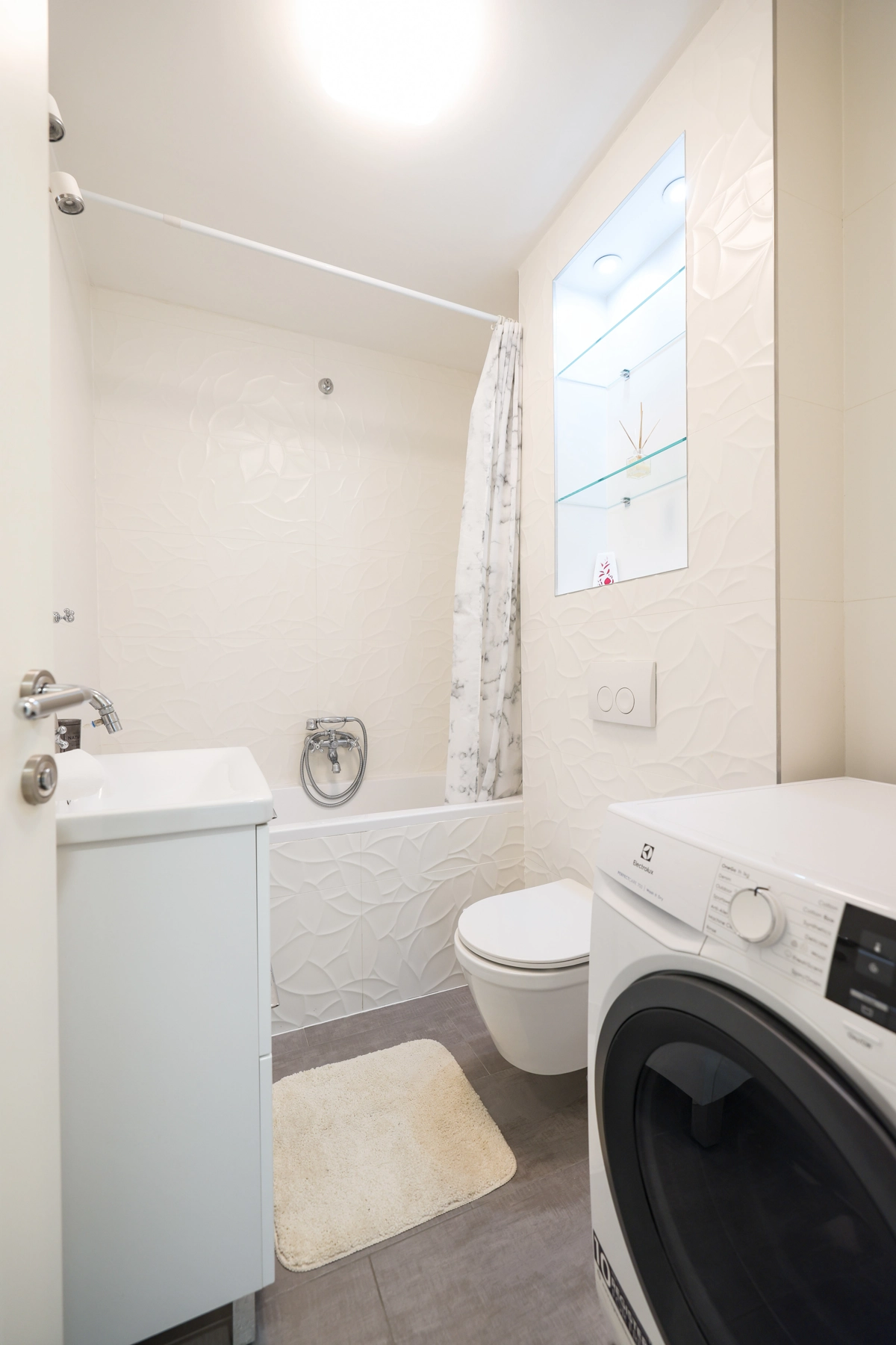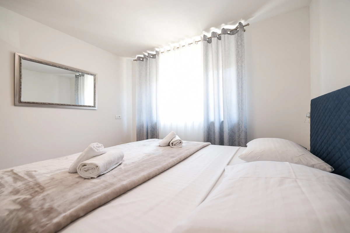 Ovaj predivan novouređeni apartman se nalazi u neboderu u jednom od kvartova koji je 10 minuta pješice od centra grada. Nalazi se na prvom katu i dostupan je dizalom. Ima dvije spavaće sobe, kupaonicu s tušem, jedan wc koji se nalazi u sklopu jedne od soba. Tu su jos kompletno opremljena kuhinja, blagovaonica i dnevni boravak s kaučem.