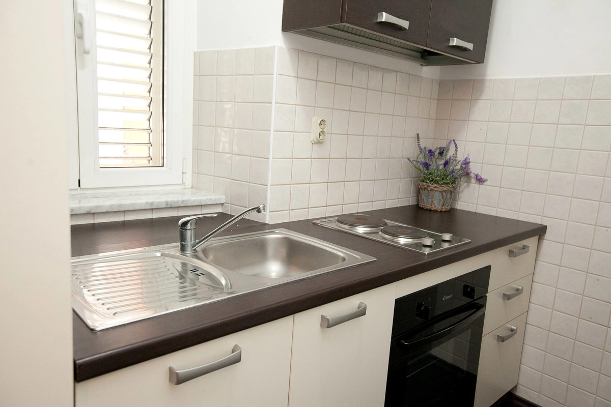 Ovaj klimatizirani apartman ima 1 spavaću sobu s 3 kreveta za jednu osobu, TV ravnog ekrana i kuhinju.