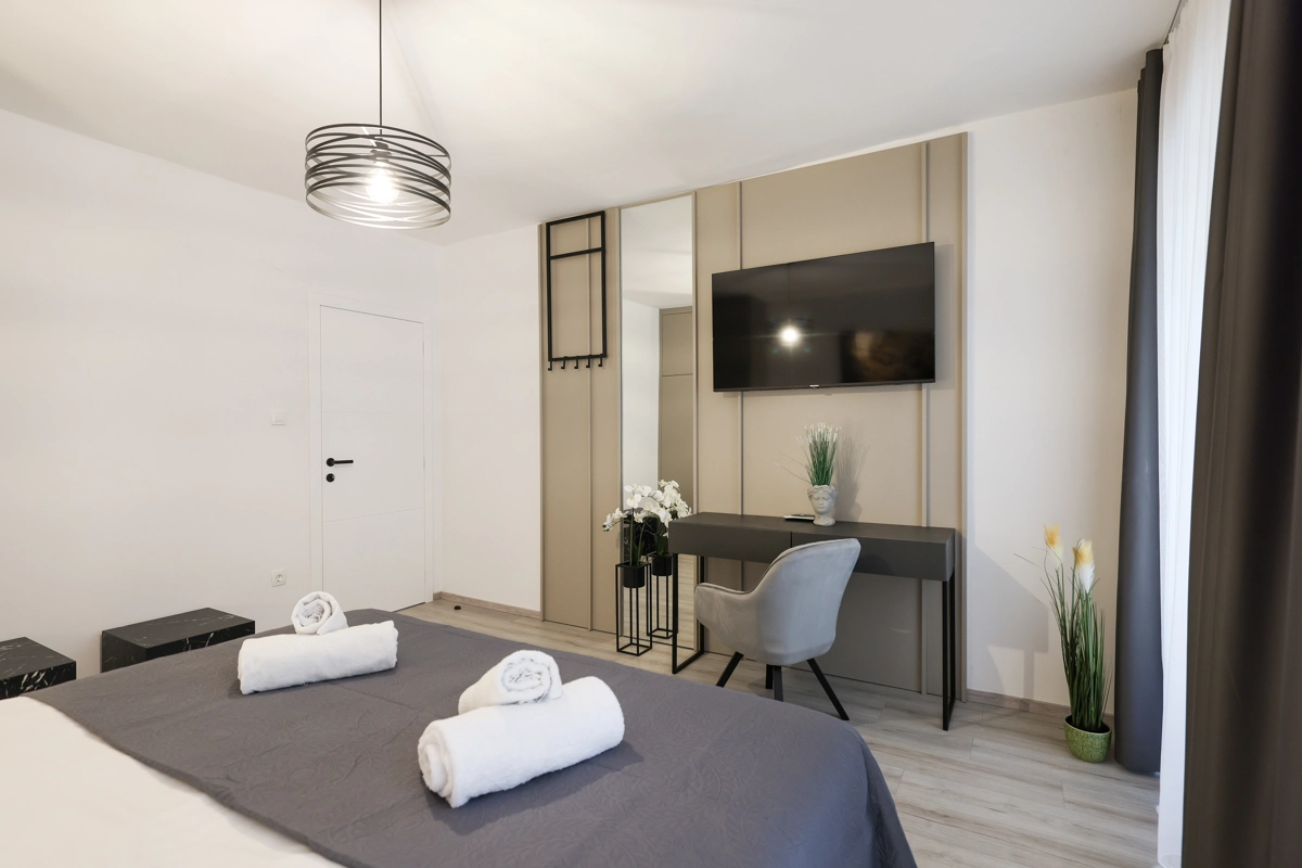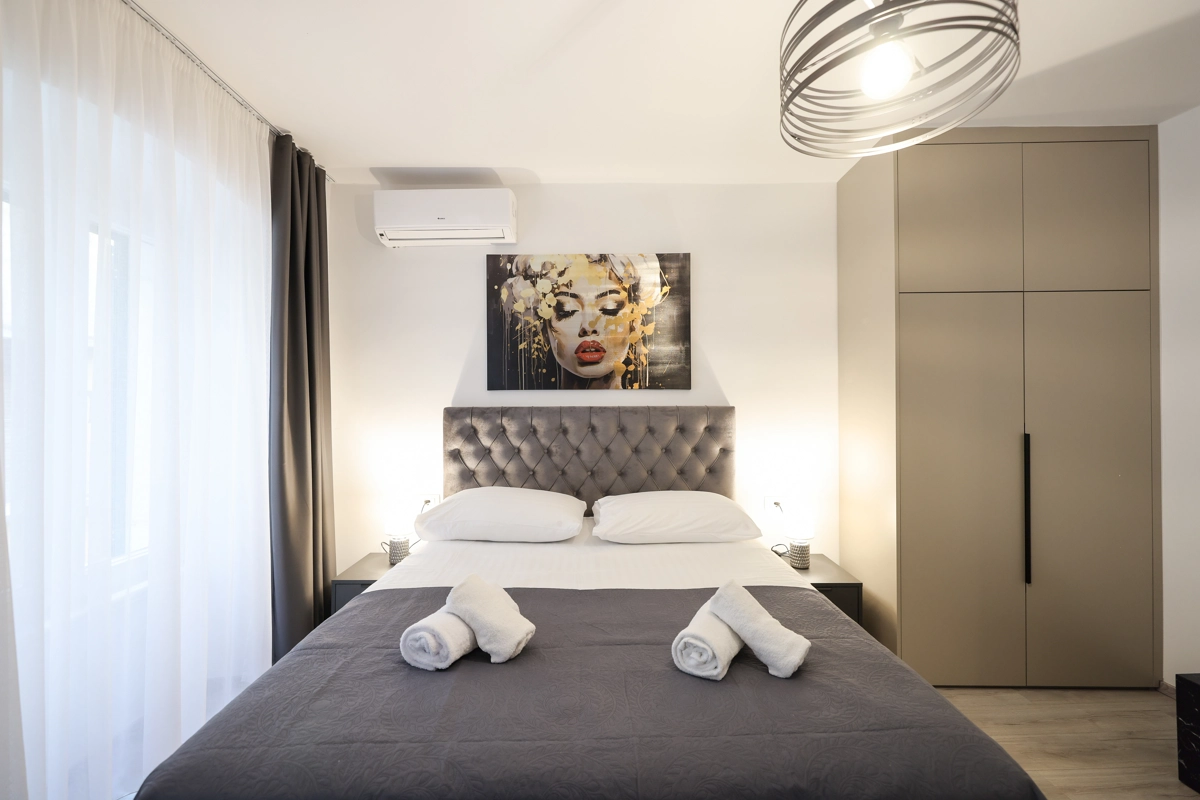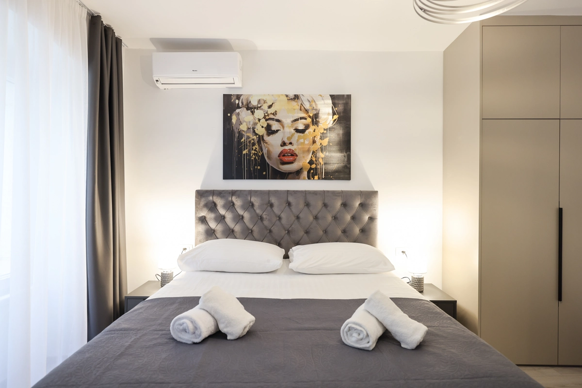 Classy 30m2 apartments in city centar have a kitchenette and one bedroom comfortably accomodating up to 2 people. Location is ideal for exploring Zadar city centar and all it's surrounding. Free WIFI, AC and a smart TV are at the disposal.