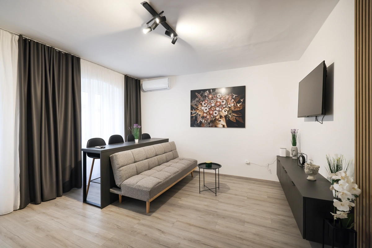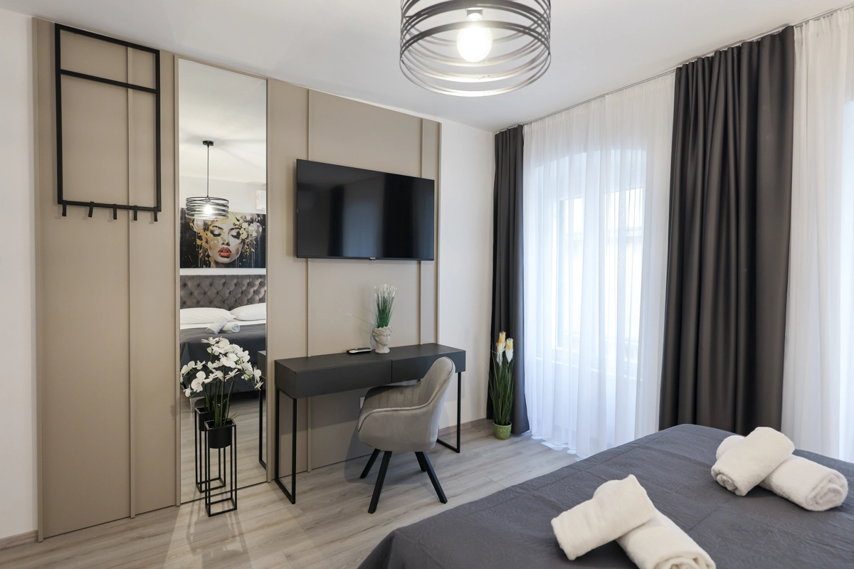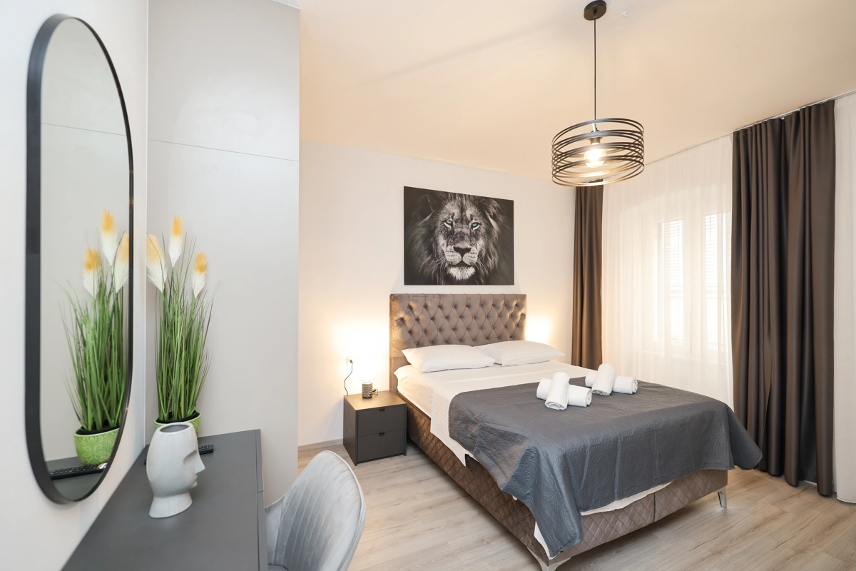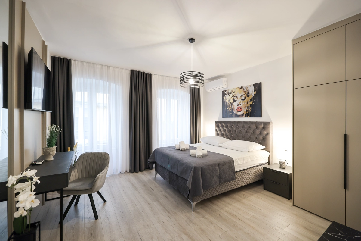 Classy 30m2 apartments in city centar have a kitchenette and one bedroom comfortably accomodating up to 2 people. Location is ideal for exploring Zadar city centar and all it's surrounding. Free WIFI, AC and a smart TV are at the disposal.
