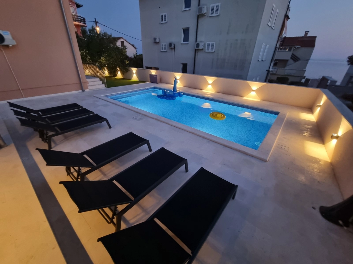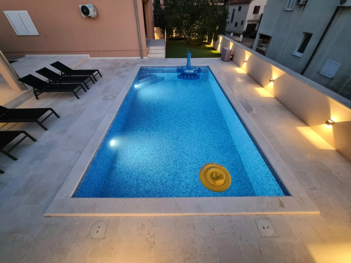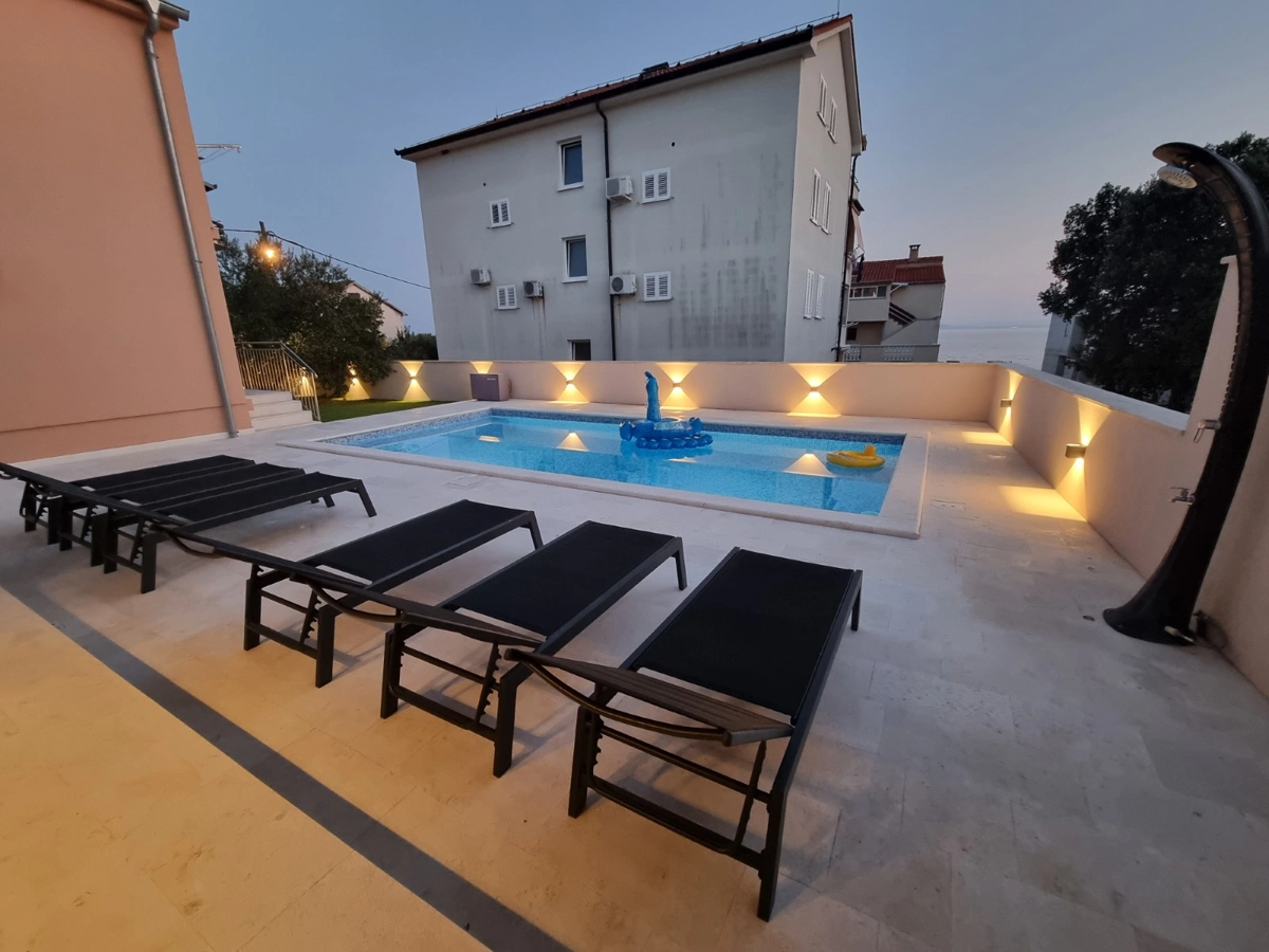 Guests can enjoy the outdoor swimming pool and garden at the apartment.