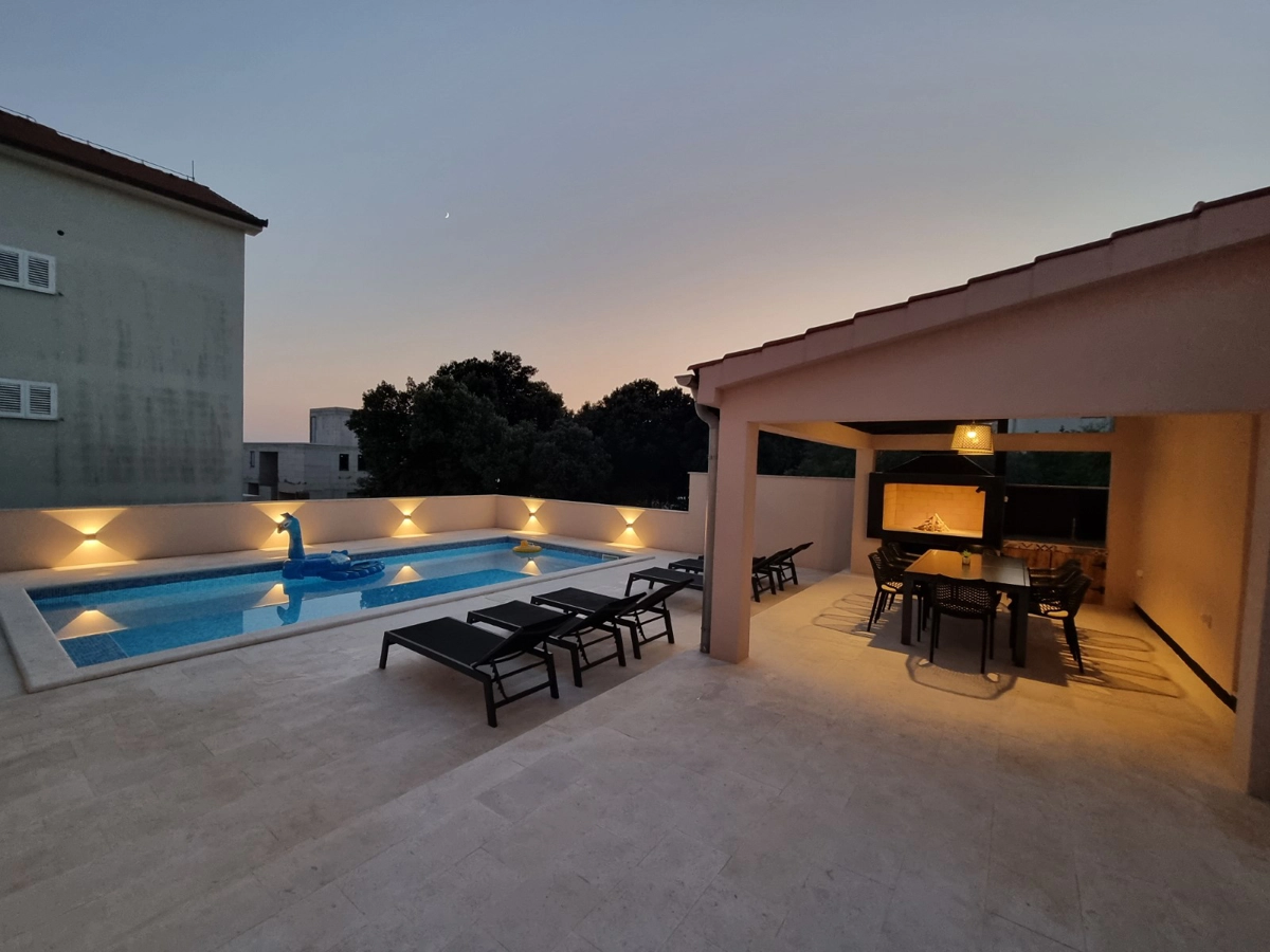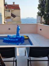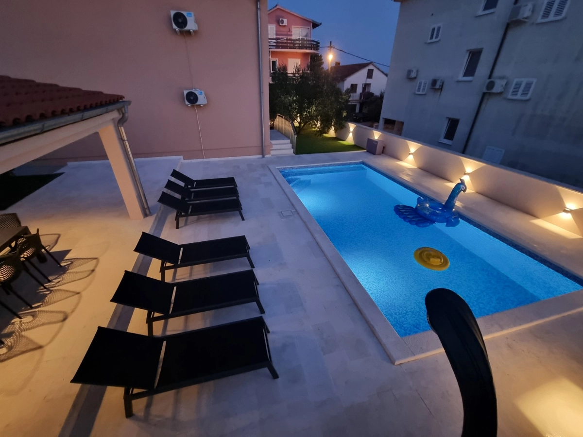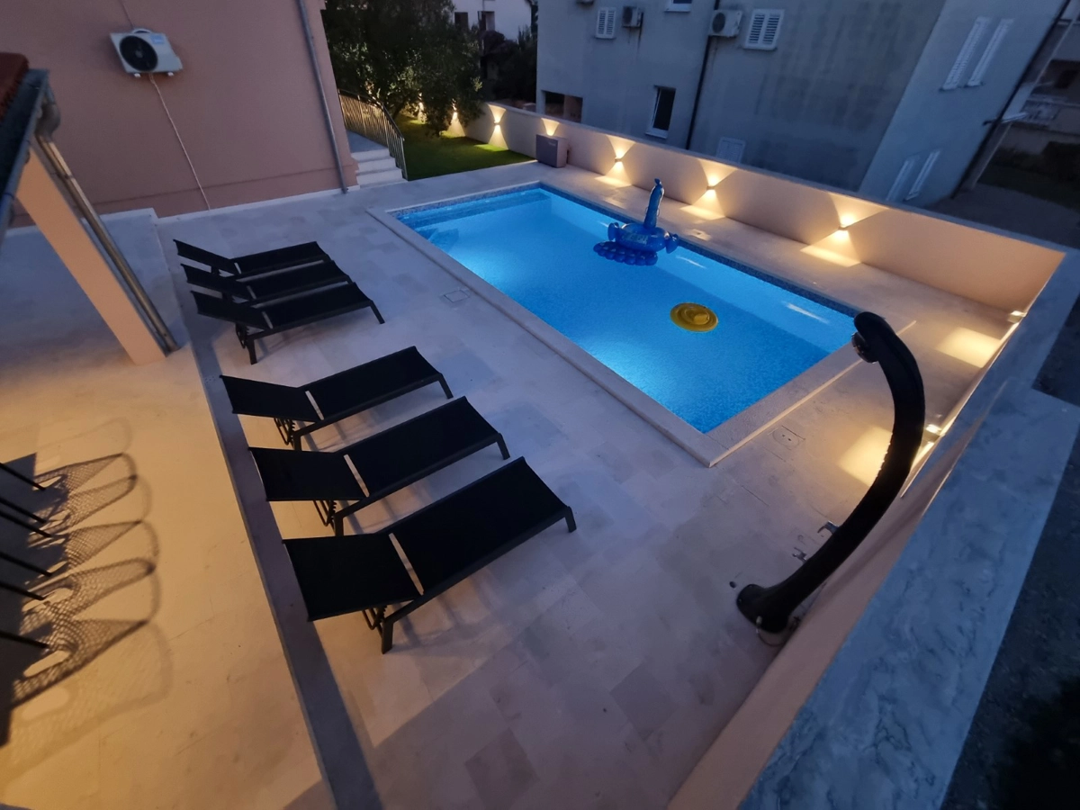 Guests can enjoy the outdoor swimming pool and garden at the apartment.