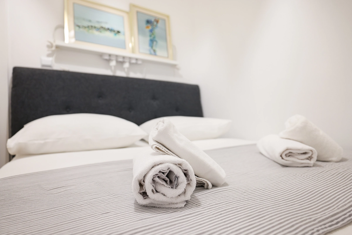 Bed linen, towels, shower gel and soap are also provided.