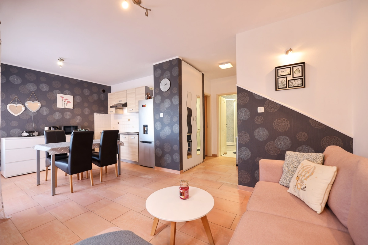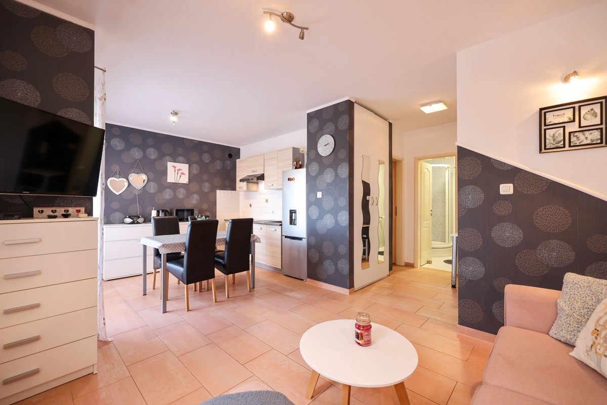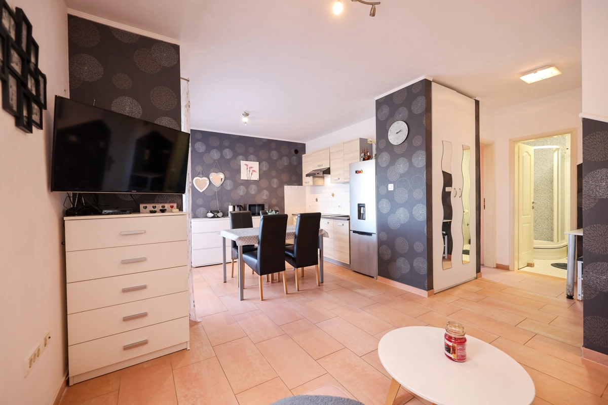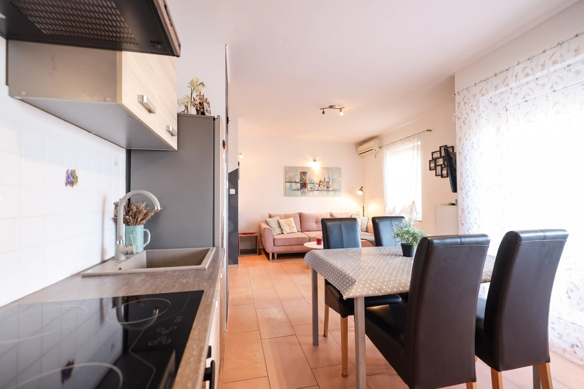 One bedroom apartment that can accommodate 4 guests is located only 50 meters from a beautiful beach with clear and clean sea. The apartment offers everything you need for a pleasant and relaxed vacation. There is private parking within the accommodation.