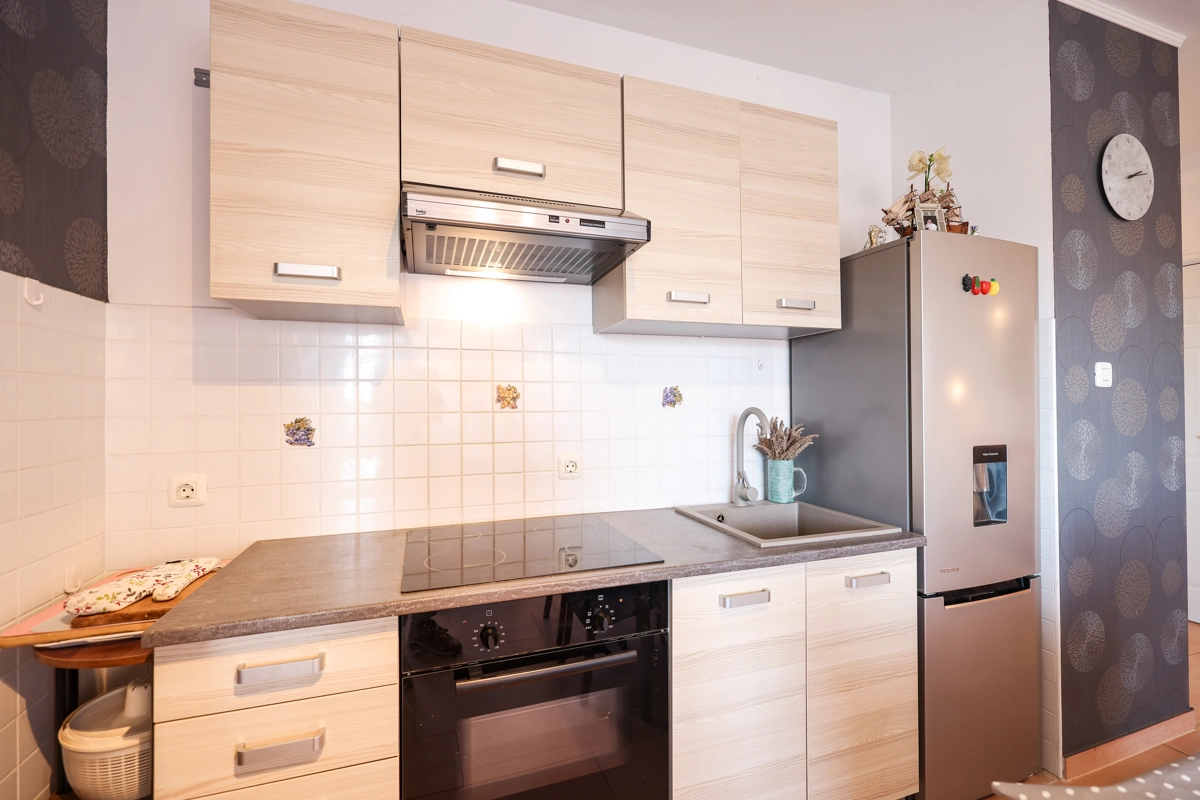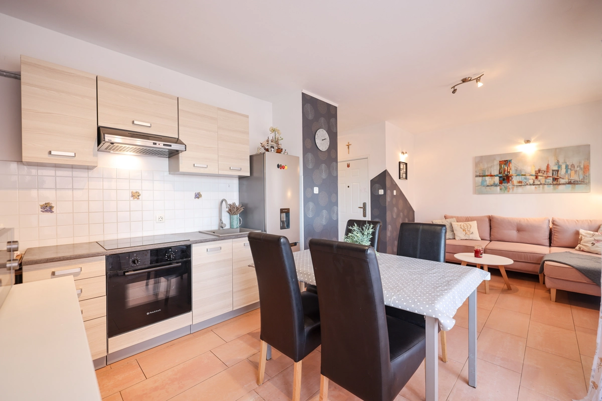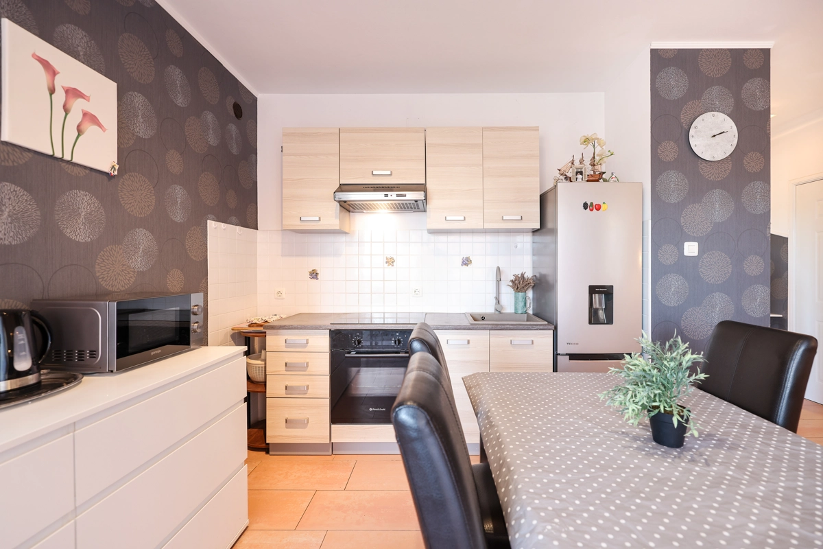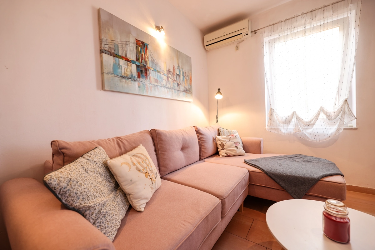 One bedroom apartment that can accommodate 4 guests is located only 50 meters from a beautiful beach with clear and clean sea. The apartment offers everything you need for a pleasant and relaxed vacation. There is private parking within the accommodation.