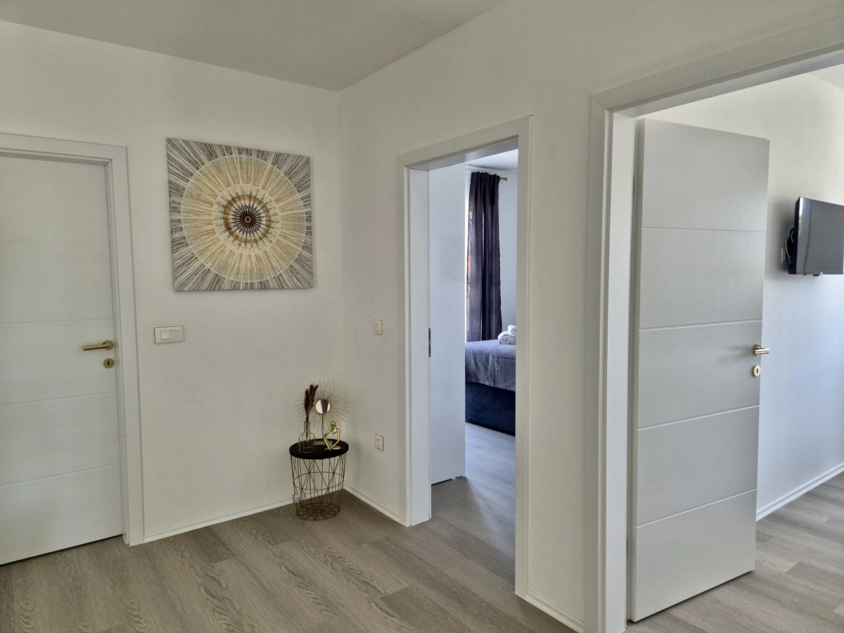 Escape to a modern and peaceful 4-bedroom villa nestled in the quiet village of Murvica, just 10 minutes from vibrant Zadar. With its sleek design, private pool, and serene surroundings, this villa is the perfect destination for families or groups seeking both relaxation and comfort.