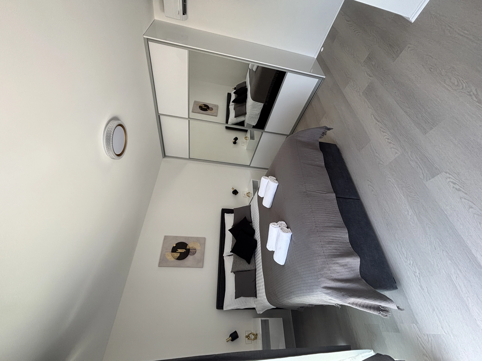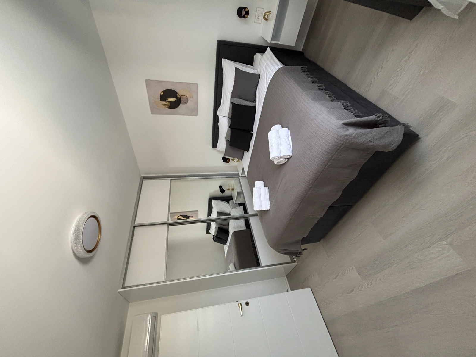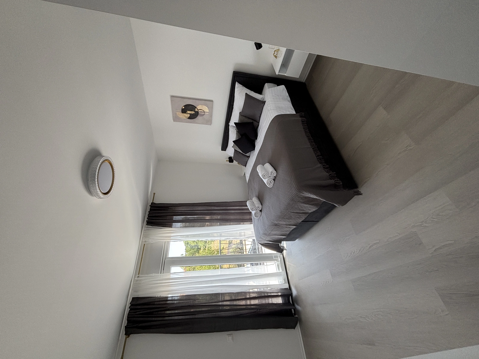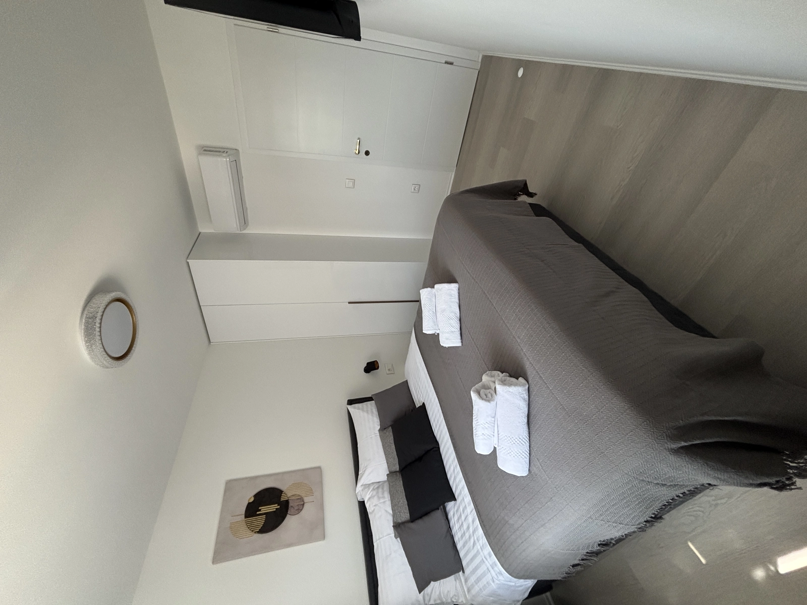 Enjoy a refreshing shower in our elegant bathrooms, featuring gold-finished fixtures, high-quality tiling, and a washing machine for your convenience.