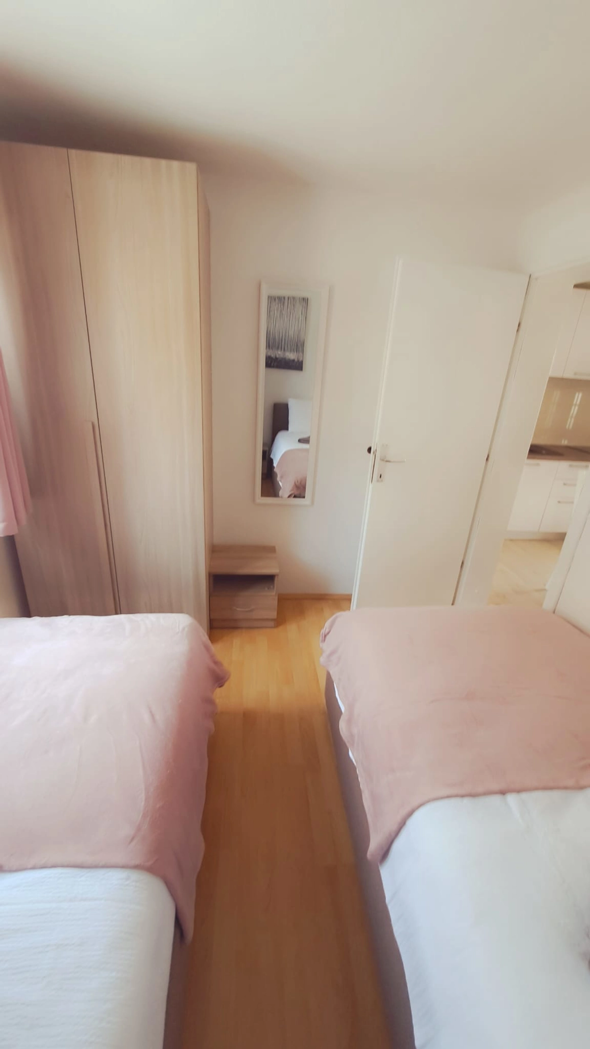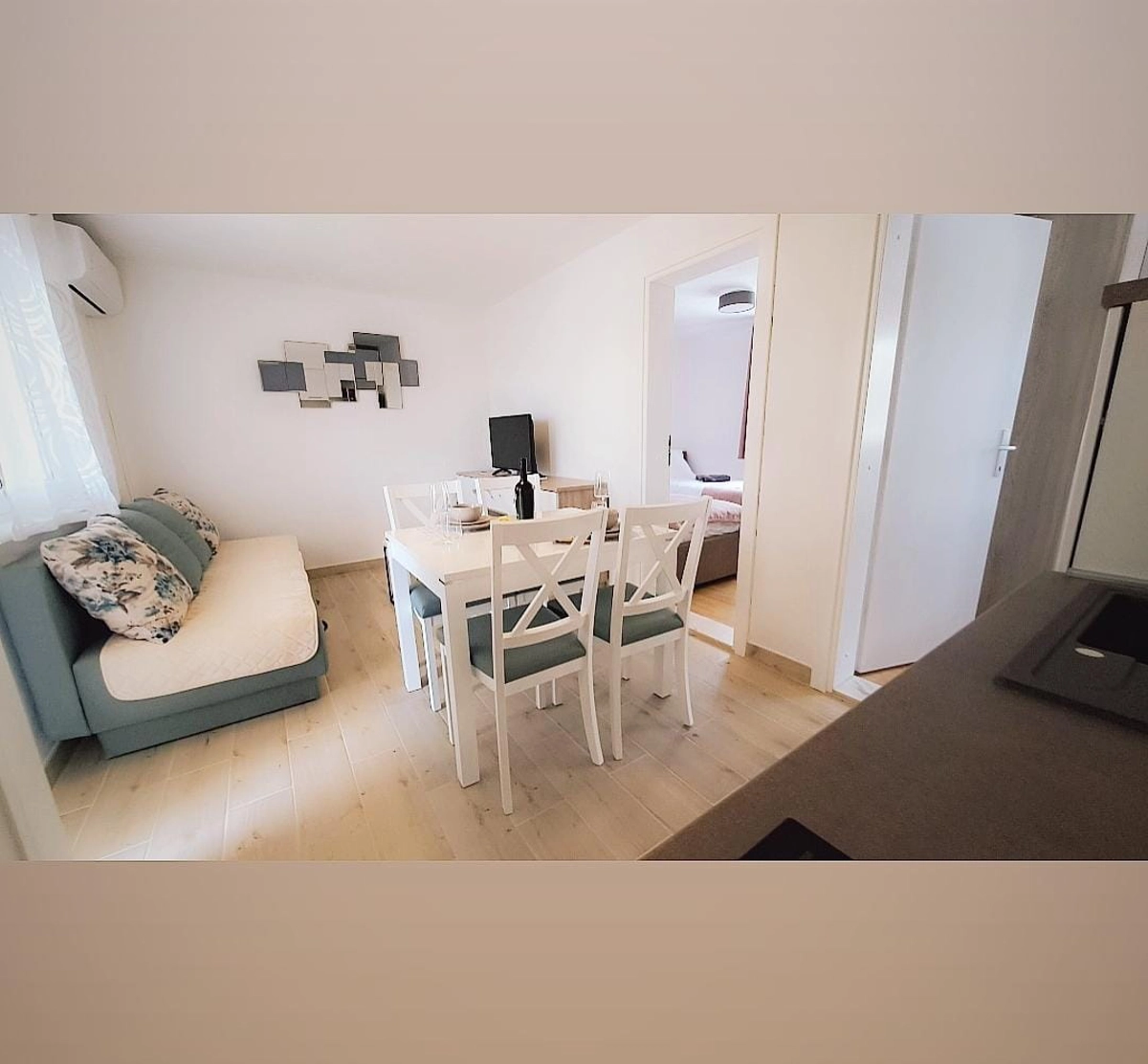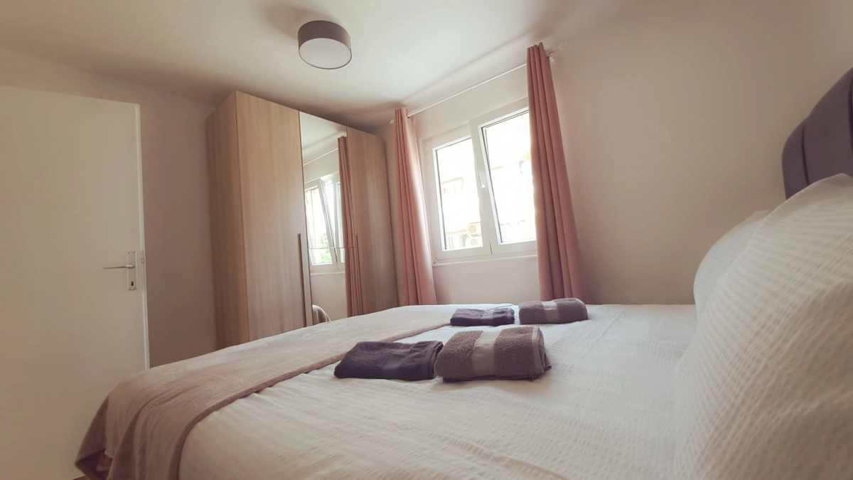 Two bedroom apartment, 48 m2, private parking, wifi, AC. double bed, 2 single beds, kitchen, balcony.