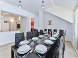 The gourmet kitchen is a chef's dream, equipped with top-of-the-line appliances and ample counter space, making it ideal for both everyday meals and entertaining guests. The dining area seamlessly flows from the kitchen, providing a perfect setting for family dinners or elegant soirées.