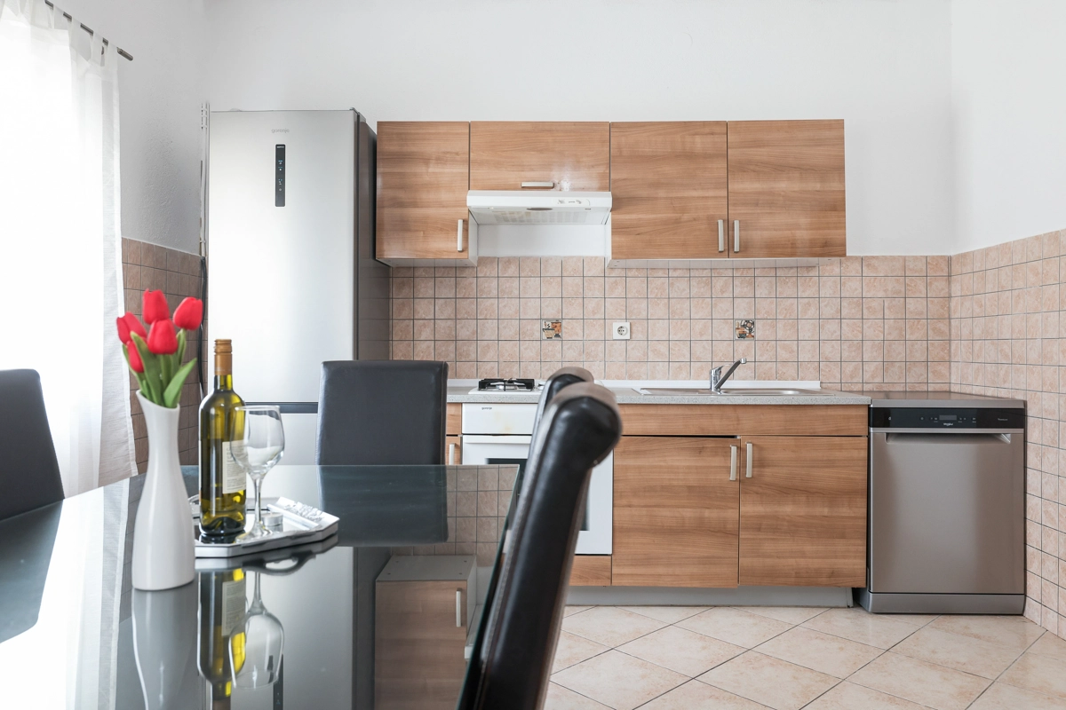 Newly build Villa Nada in a charming village Galovac just 20 min from the historic city of Zadar offers 2 seperate apartments accomodateing up to 10 people in 4 bedroom and 2 pull out sofas. Each bedroom has a king size bed. There are 3 fully equipped kitchens and 2 bathrooms. The house has an outdoor swimming pool 55m2 with a build jacuzzi of 9m2 that uses. The pool and the jacuzzi are not heated but you will found out that they are the perfect temperature during summer. Outdoor kitchen and sunbeds are ideal for a summer fun. The house is rented as a whole property.